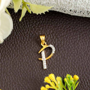 Gold Plated Ad Crystal Cubic Zirconia "P" Alphabet Without Chain Pendant for Women/Girls.