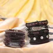 Men's Rugged Leather & Feather Arm Braided Bracelet Combo Set