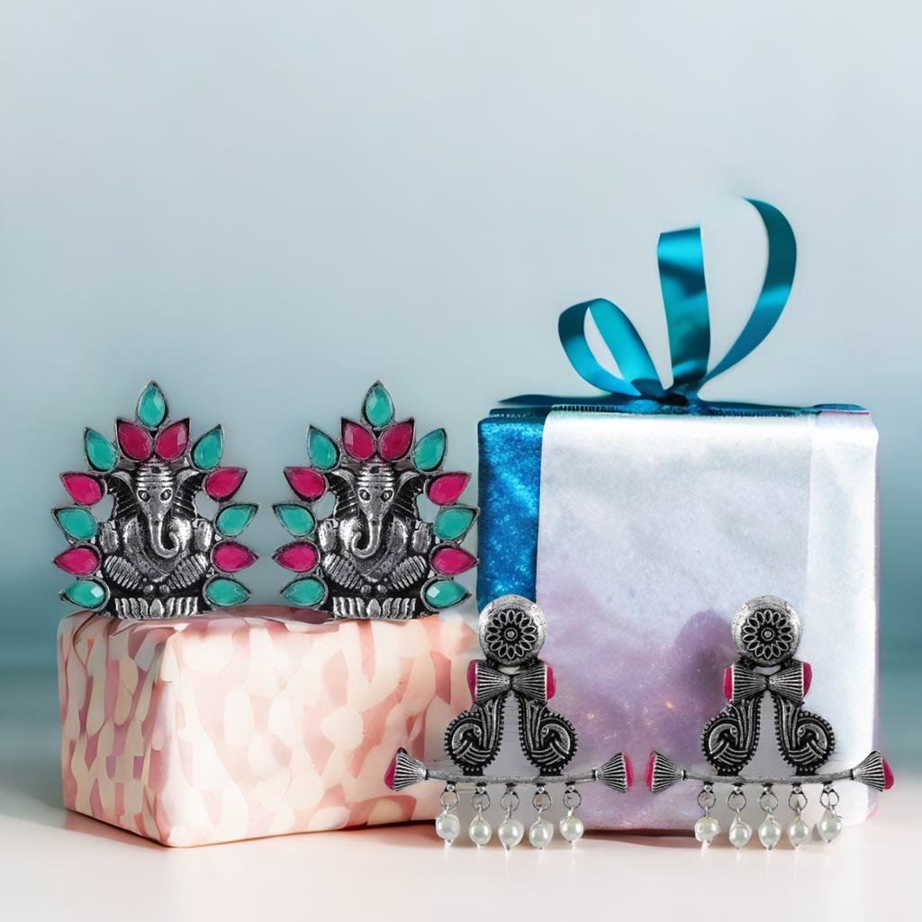 Introducing our Oxidized Silver Stud Earrings Combo Set, a collection that encapsulates the enduring charm of oxidized silver craftsmanship. This...