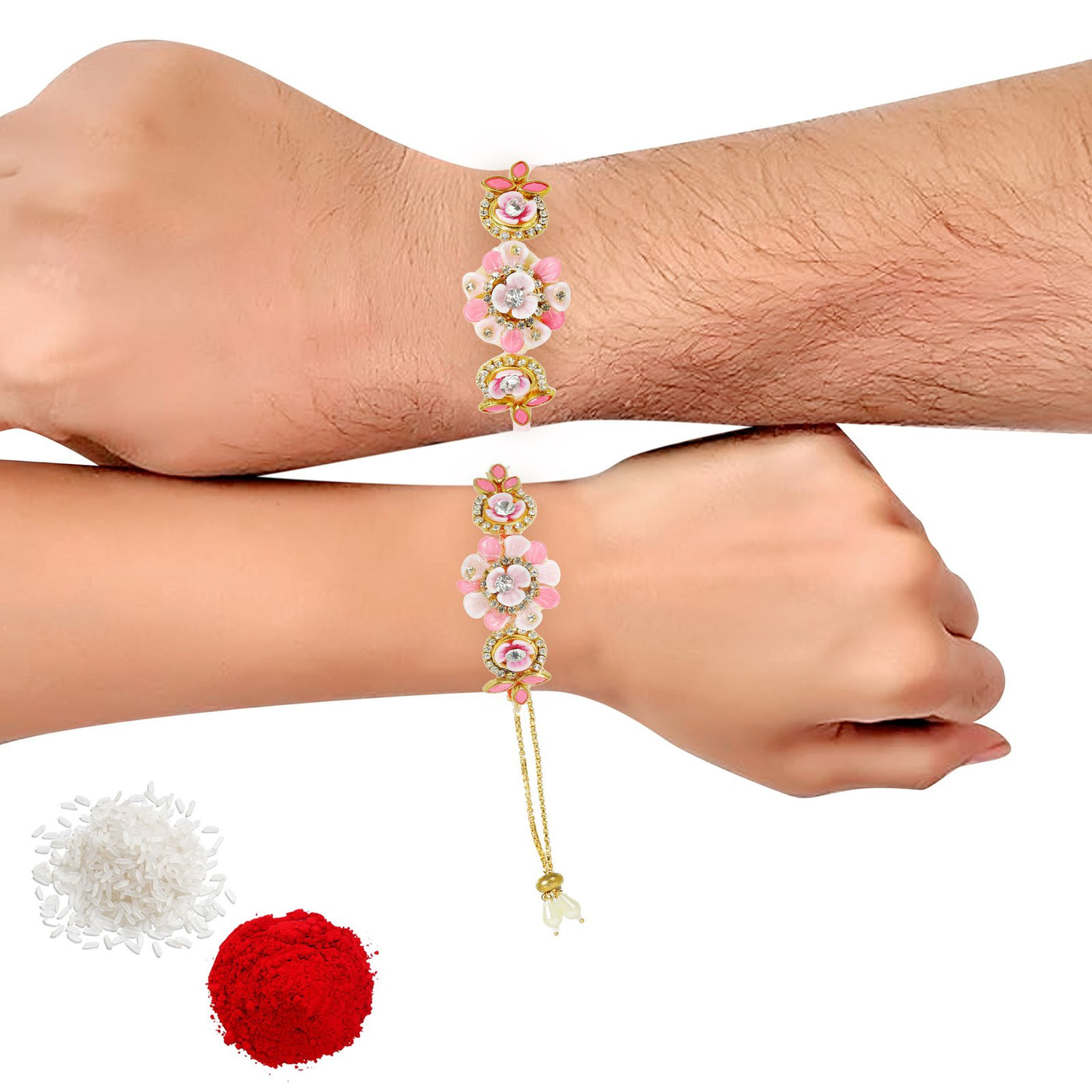 2 PCs Bhaiya Bhabhi Couple Kundan Zari Pearl Design Rakhi