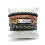 4 Piece Multi-Layered & Multi-Coloured Mattel, Beads, Leather Believe Bracelet