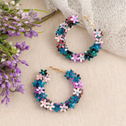 Beaded Multi Floral Hoop Earrings